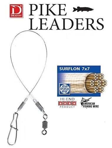 Er is een ruime keuze uit lengte en trekkracht en alle dragon surflon classic 7×7 stalen onderlijnen zijn voorzien van zeer sterke speld.
