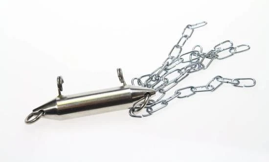 Vervolgens zullen de kettingen achter de dreggen vast blijven hangen en kun je op de kunstaasredder kracht zetten.
