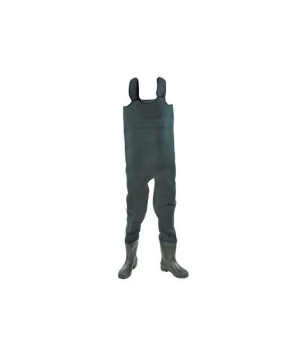 Het waadpak is uitgerust met een paar stevige laarzen die veel grip bieden.