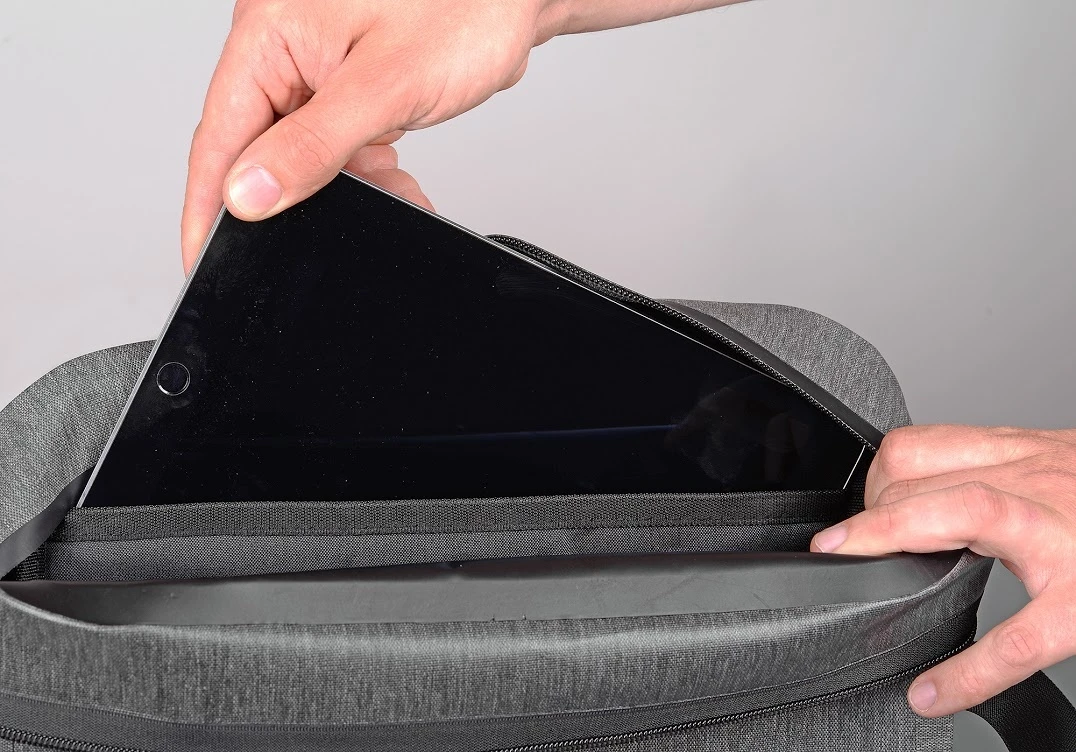 Praktische tas die dankzij de gevoerde schouderiem goed te dragen is.