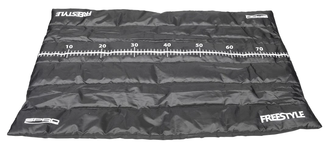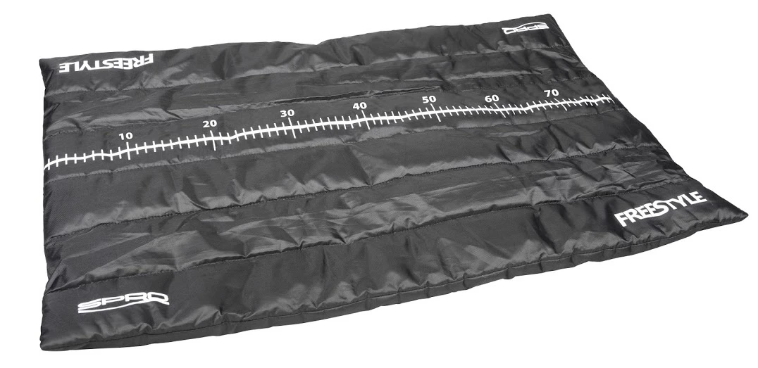 De spro freestyle lite mat heeft afmetingen van 80x45cm met opdruk van lengte om de vis eenvoudig te meten.