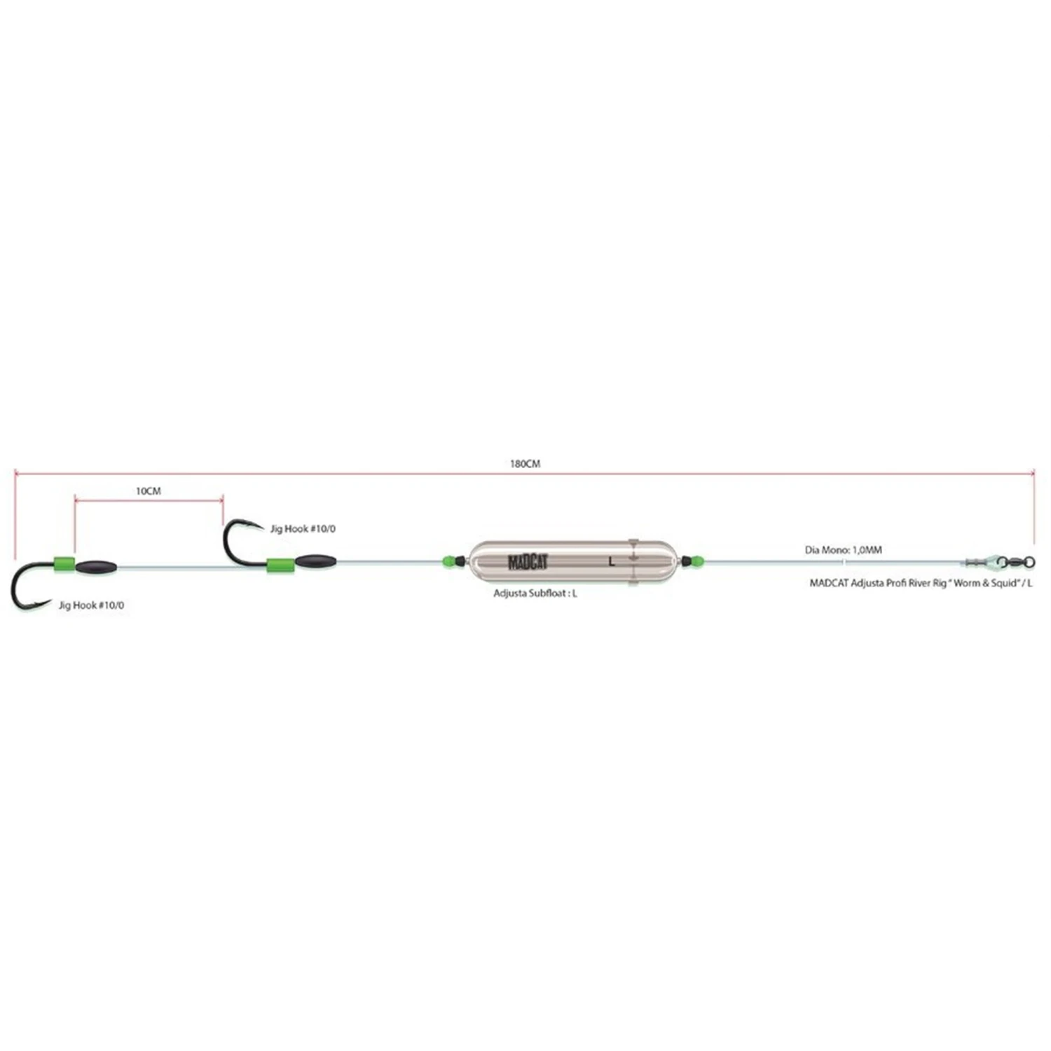 Deze kant-en-klare onderlijn is speciaal ontworpen voor het vissen op meerval in een stromende rivier, een handige kant-en-klare onderlijn die speciaal is ontworpen voor het bodemvissen op snel stromende rivieren met wormen of stukken inktvis.