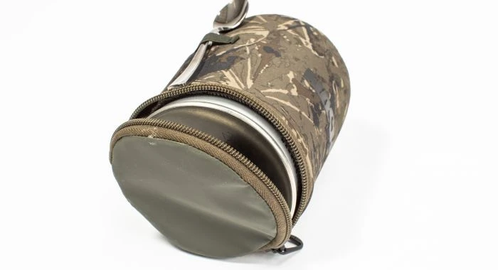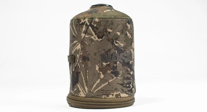 Het zakje wordt geleverd in een neopreen camo-afwerking, wordt aan de basis geritst en past op de meeste grote gasflessen.