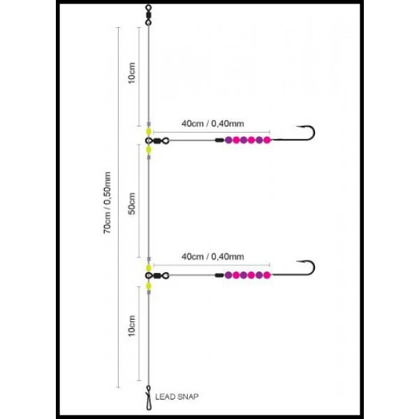 Deze paternosters zijn handgeknoopt om een zo hoog mogelijke kwaliteit te kunnen bieden. Doordat ze zijn voorzien van twee vlijmscherpe haken (1/0) verspeel je minder vis.