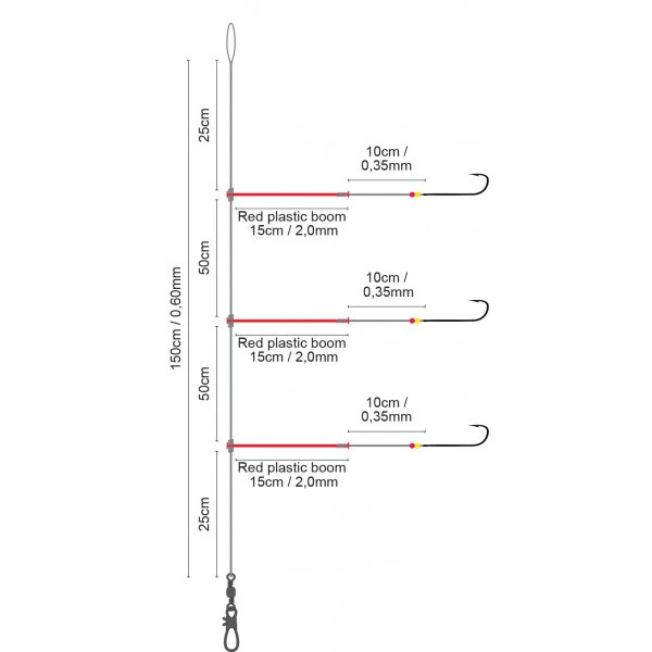 De onderlijnen zijn zorgvuldig geknoopt en voorzien van aantrekkelijke beads.