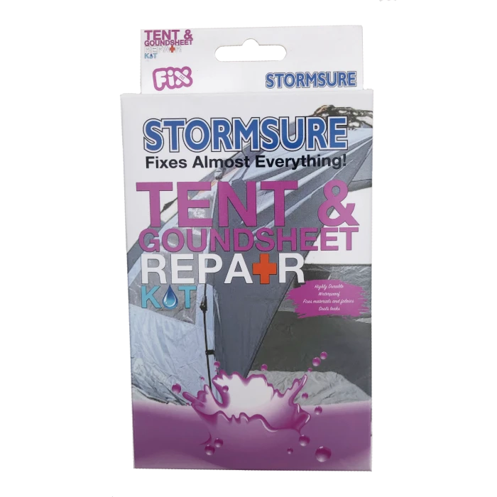 Een handig kant en klaar kit om tenten en grondzeilen snel te kunnen repareren.
